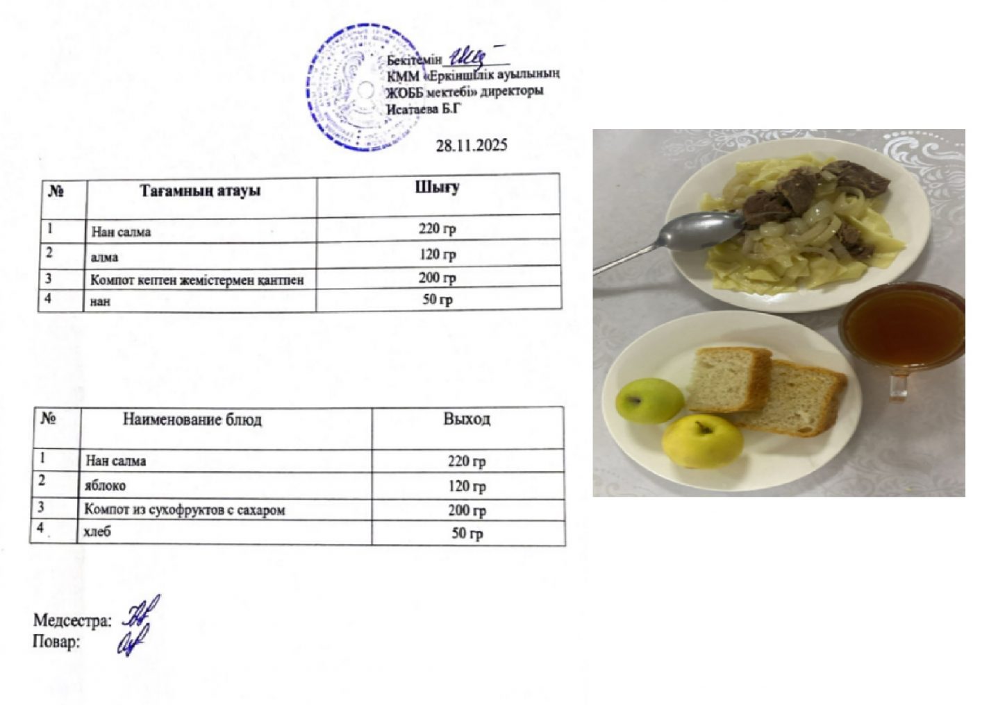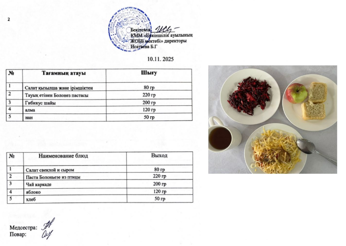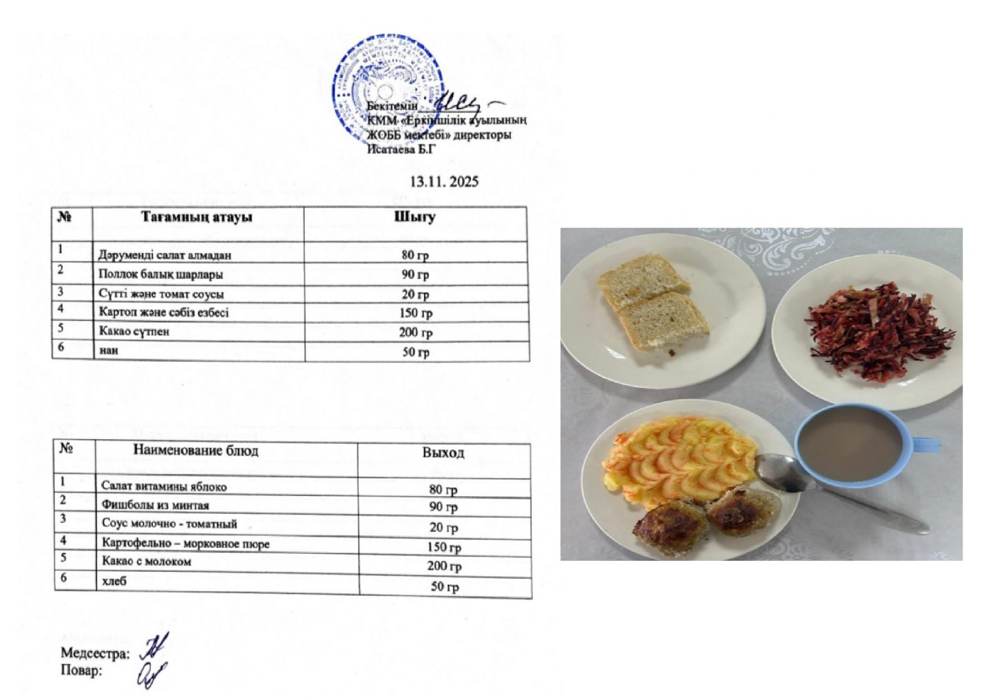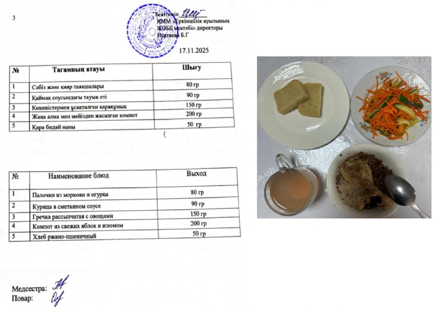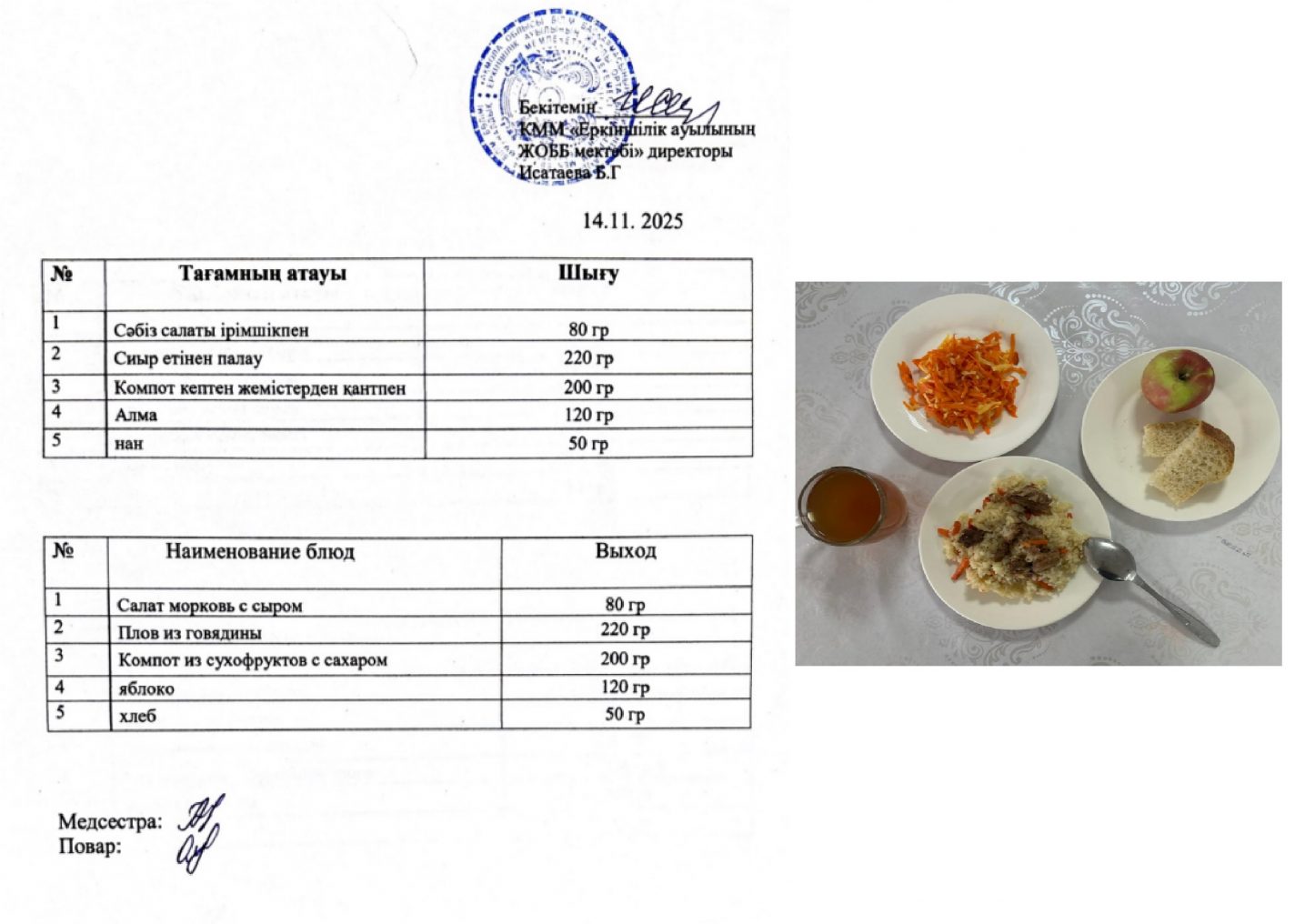 06.11.2025ж. күнгі ас-мәзірі