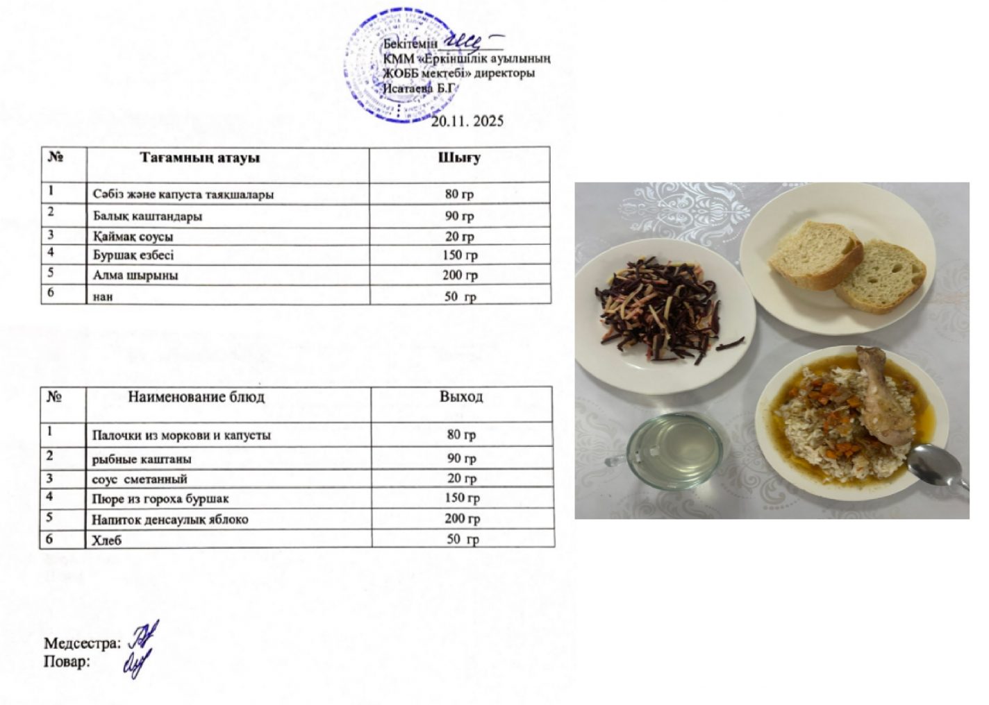 20.11.2025ж. күнгі ас-мәзірі