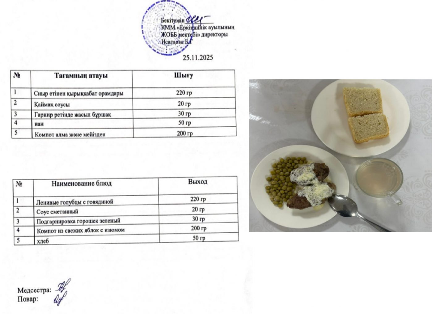 25.11.2025ж. күнгі ас-мәзірі