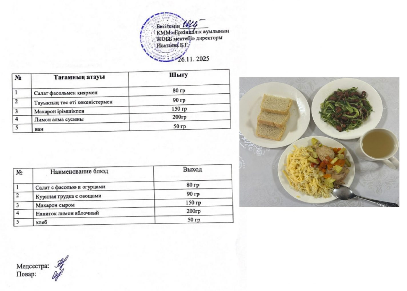 26.11.2025ж. күнгі ас-мәзірі